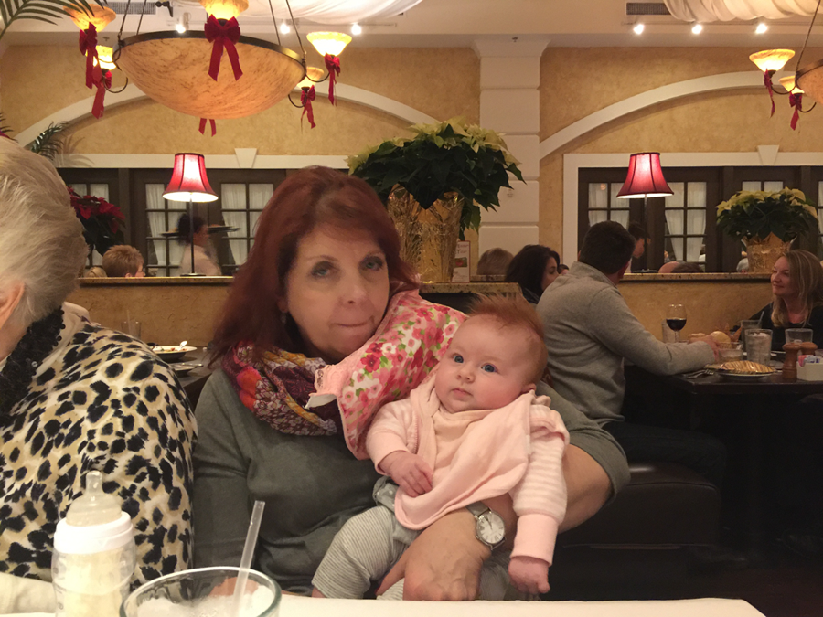 We all went to Brio one night. It's one of our favorite places, so we love to take people there when they come in from out of town. Then we walked around the very cold outdoor mall. They had all of their lights up, which was gorgeous, and we bundled Gwen up so she was super warm.