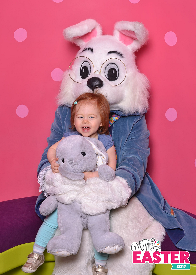 She was so excited to see the Easter Bunny! I don't know if it's because she's a little bit older, or because it was a bunny, but she did much better with this photo than her Santa Claus one!